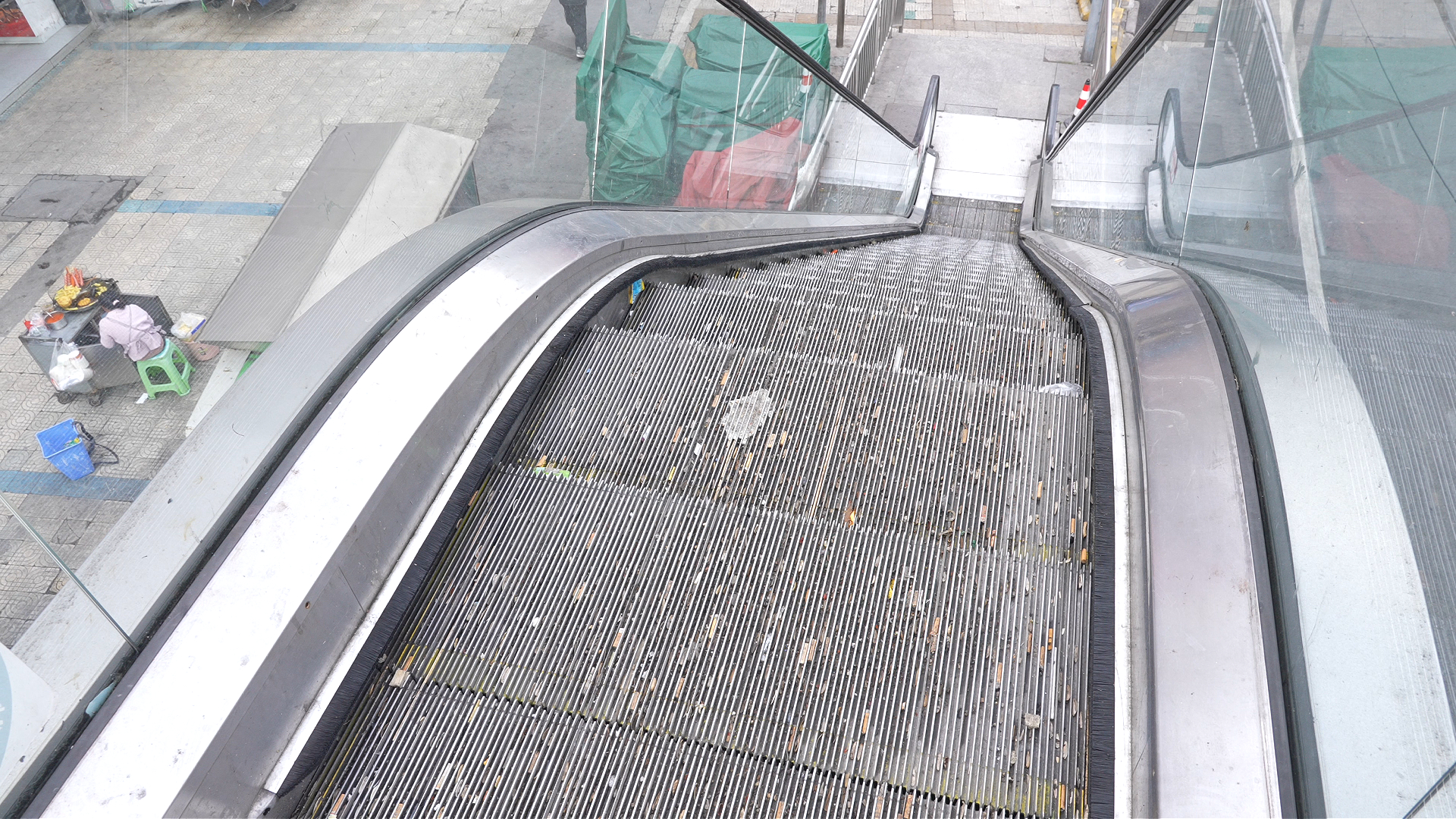 停运的电梯上满是垃圾碎屑